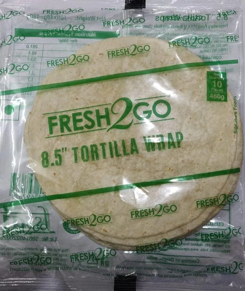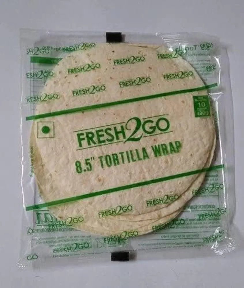 Fresh 2 Go” produces various ready-to-cook tortilla wraps, including plain and whole wheat options in different sizes. They are designed for convenience and can be prepared quickly by heating on a griddle or in a microwave.